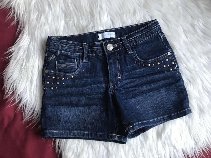 джинсові шортики у відмінному стані пояс 33, є стяжка, довжина 27, ПОБІДИ 40. з стрейч у складі, тягнуться.