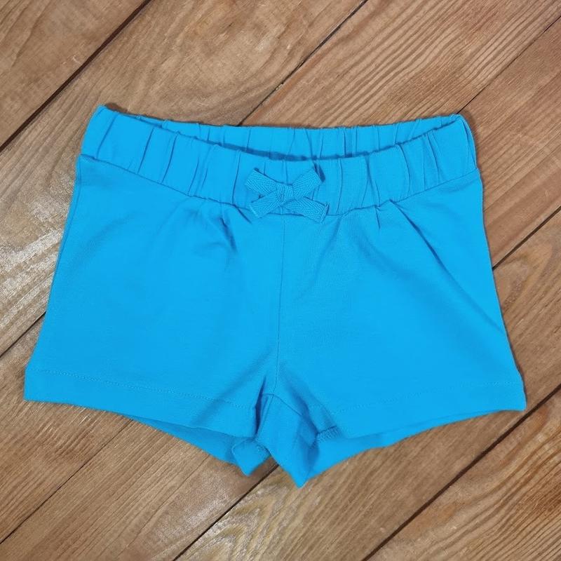 Трикотажні шорти для хлопчика, пояс на м'якій гумці. Колір: Бірюзовий. Склад: 95% бавовна, 5% еластан. Зростання 110 (5 років) - Довжина 20 см, посадка спереду до шва 15 см, ПОТалии 25,5 см, ПОБедер 31,5 див.