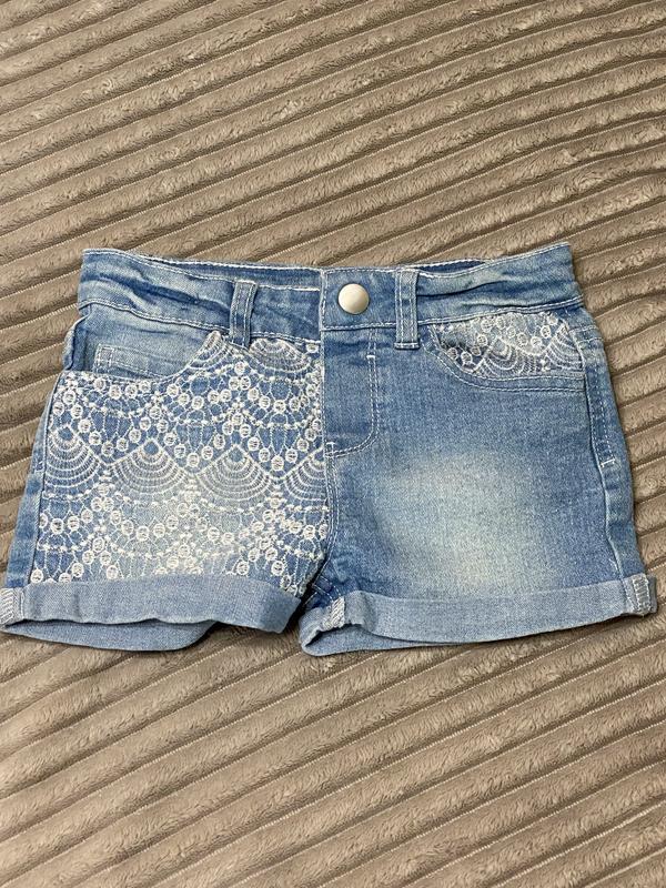 Красивые джинсовые шорты с вышивкой. Состояние новых. Замеры полуобъём пояса 27 см, длина 21 см.