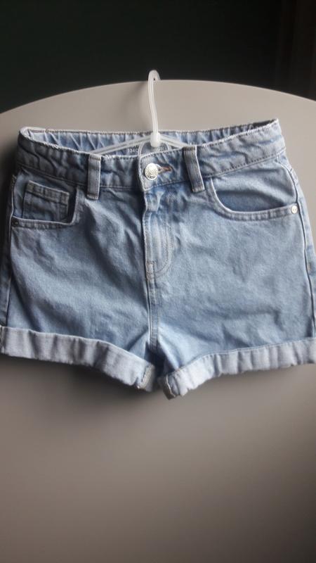 Шикарные шорты мом на девочку 8-9 лет рост 134см. Джинс плотный без стрейча. Пот 30см, длина 28см, ширина внизу 23см. Состояние идеальное.