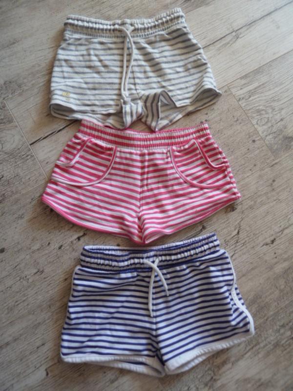 Трикотажні шорти на 4-7 років на дівчинку Шорти Некст на 5 років ріст 110 см, зроблені в Індії, 100% коттон (сіра смужка) довжина 21 см, ПОТ 25, ПОБІДИ 33 шорти Некст на 4 роки: довжина 21, ПІТ 27 см (синя смужка) на 7 років (троянд смужка): довжина 18, талія 27, ПОБІДИ 36 см в ідеалі