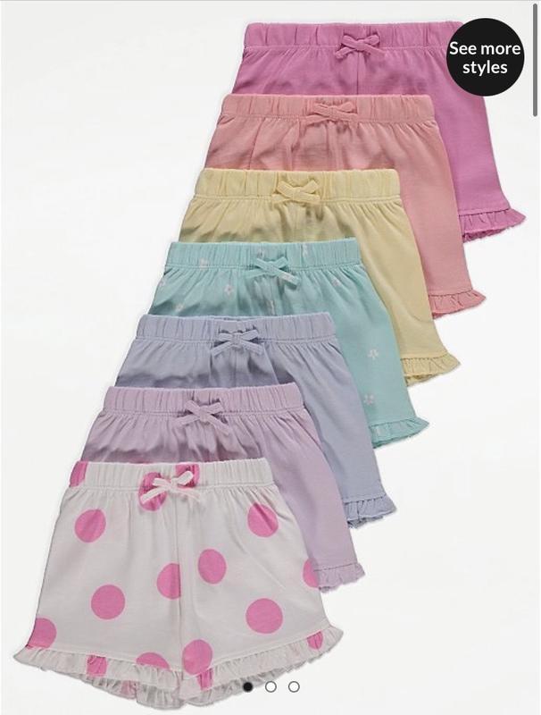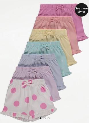 В наявності шортики на дівчинку. Розмір зазначено на вік 18-24 міс(92 см) та в реальності дуже більшемірять. Підійдуть на вік 3-4 роки (104 см). Заміри: - довжина 26 см - ширина в поясі 22,5 см Тканина 100% котон. Ціна вказана за 1 шт. Заходьте на mama.lama.kids_shop . Ціни Вас приємно здивують.