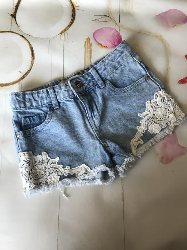 Красиві джинсові шорти,для дівчинки 8-9 років,зріст 134.,пот 30см,поб 37см.