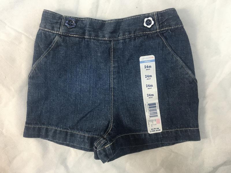 Шорти дитячі джинсові для дівчаток американського бренду Wonder Kids , вироблені в Бангладеш , матеріал:: 60% рамі , 40% бавовна ! Екологічно чиста тканина рамі, виготовлена з китайської кропиви, вважається лікувальною. Крім того, матеріал по своїй міцності перевершує бавовна в 7 разів ! В талії зі спини гумка ! У розмірі 2Т, 4Т, 5Т є в світлому тоні ! Розміри: 24 міс. - ПОТ - 22 см, ПОБ - 29 см, довжина - 22 см;; 2Т - ПОТ- 23 см, ПОБ - 29 см, довжина - 21 см; 3Т - ПОТ- 24 см, ПОБ - 30 см, довжина - 21 см; 4Т - зріст ( 100 - 106 см ), вес - 13 - 16 кг, ПОТ- 25 см, ПОБ - 31 см, довжина - 22 см; 5Т - зріст ( 106 - 115 см) , вес - 16 - 19 кг , ПОТ- 27 см, ПОБ - 32 см, довжина - 24 см.