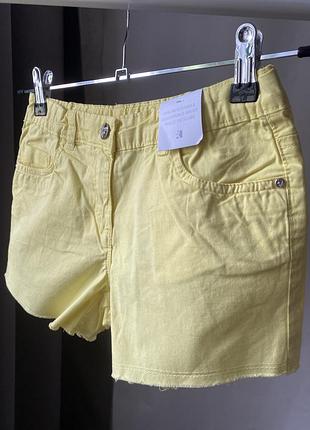 Яскраві джинсові шорти від IDEXE. Спереду і ззаду є кишені. Застібка - блискавка з ґудзиком. У поясі протягнута регулююча резинка. Склад тканини: 97% котон, 3% еластан Вік 9-10 роки, 140 см. Заміри: довжина - 26 см, посадка – 29 см, ширина по талії – 34 см (затягування)