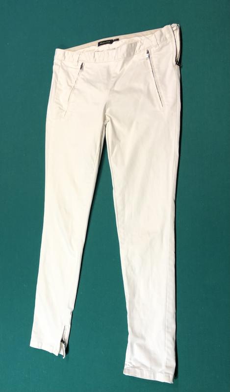 Штани на дівчинку Білосніжні, як нові Після однієї дитини. Купували за кордоном. Вдягали дуже мало Застібуються збоку на ґудзик і блискавку Кишені-обманка , не функціональні Донизу звужені , на блискавці НОТ-39 см Довжина по зовнішньому шву-94 см По внутрішньому-72 см Посадка спереду-22 см Посадка ззаду 34 см
