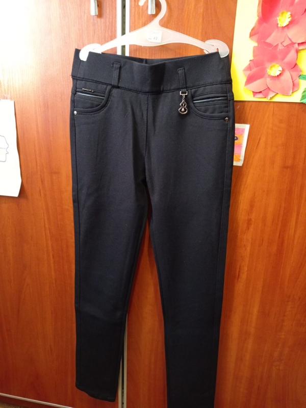 Штани-стрейч, тягнуться, темно-синього кольору, пояс на резинці. Заміри: пояс 31 см, тягнеться до 37 см по бедрах 34см довжина 84 см.