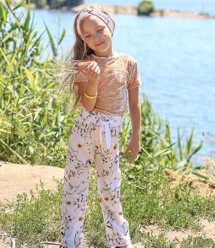 Детские брюки, легкая костюмная ткань, талии резиночка, дополненные шнуровкой, в комплекте повязка