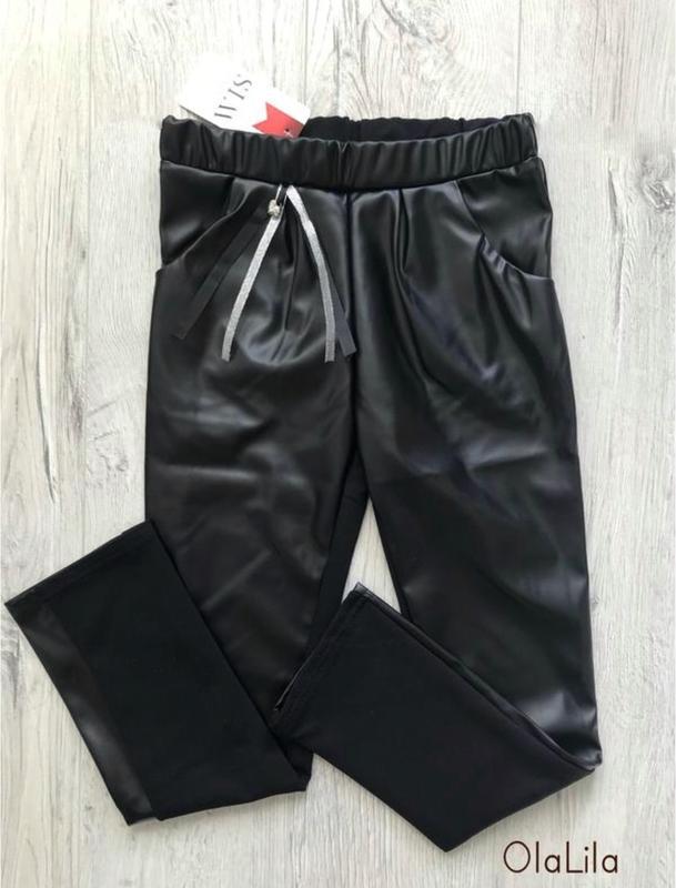 Брюки для дівчаток ззаду турецький трикотаж-двунитка, спереду еко-шкіра колір чорний в наявності 134,146,152,158 р Доставка Нова пошта і Укрпошта