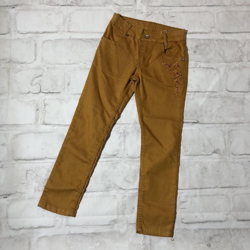 Котонові брючки для дівчинки. Висока посадка. Спереду напівкруглі кишені, ззаду накладні. Пояс на блискавці та ґудзику, є резинки-регулятори. Також є петельки під ремінь. Малюнок вишивка. 95% бавовна, 5% еластан. Туреччина. Розмір: 📌122 см: пояс 25 см, НОС 34 см, довжина 71 см, крок 52 см. Колір: гірчиця.