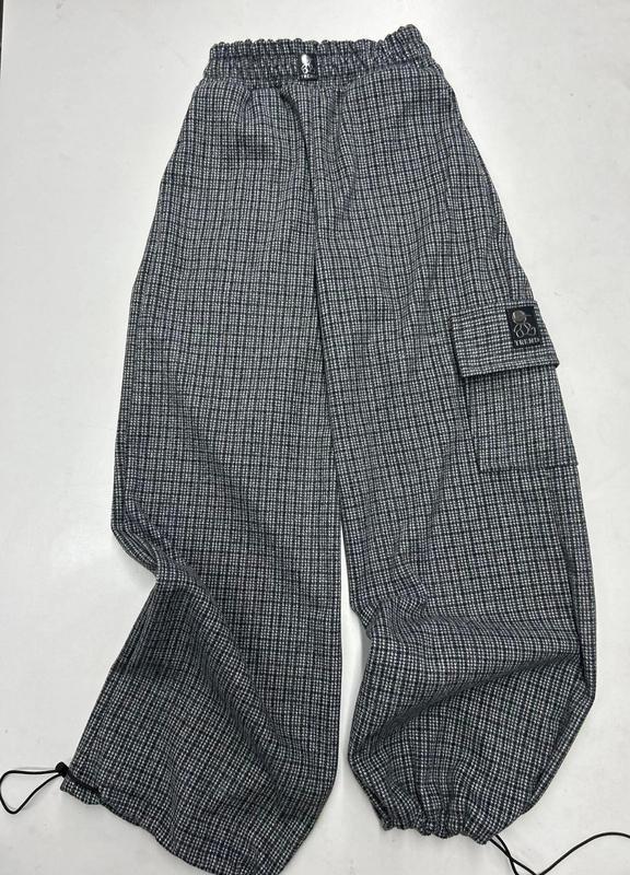 Теплые брюки карго-парашуты. Внизу стягиваются на шнуровку. Пояс на резинке. Есть карманы и накладной карман. Ткань - кашемир. Замеры: 134 длина - 84см, шаг - 63см, пояс - 24см, полуобхват бедер - 43см; 146 длина - 92см, шаг - 68см, пояс - 25см, полуобхват бедер - 45см; Мс