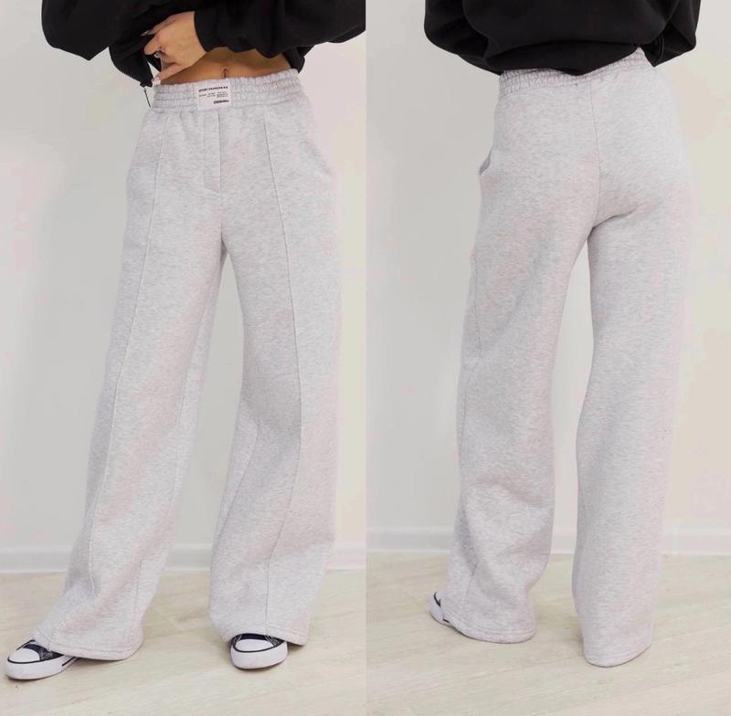 Арт 3677 Теплі штани палаццо-труби З кишенями У поясі під резинку По переду висточка Тканина тринитка пеньє на флісі Зріст/довжина/крок/пот/поб похибка+-2см 146-152/94/66/28/47-1шт Тан