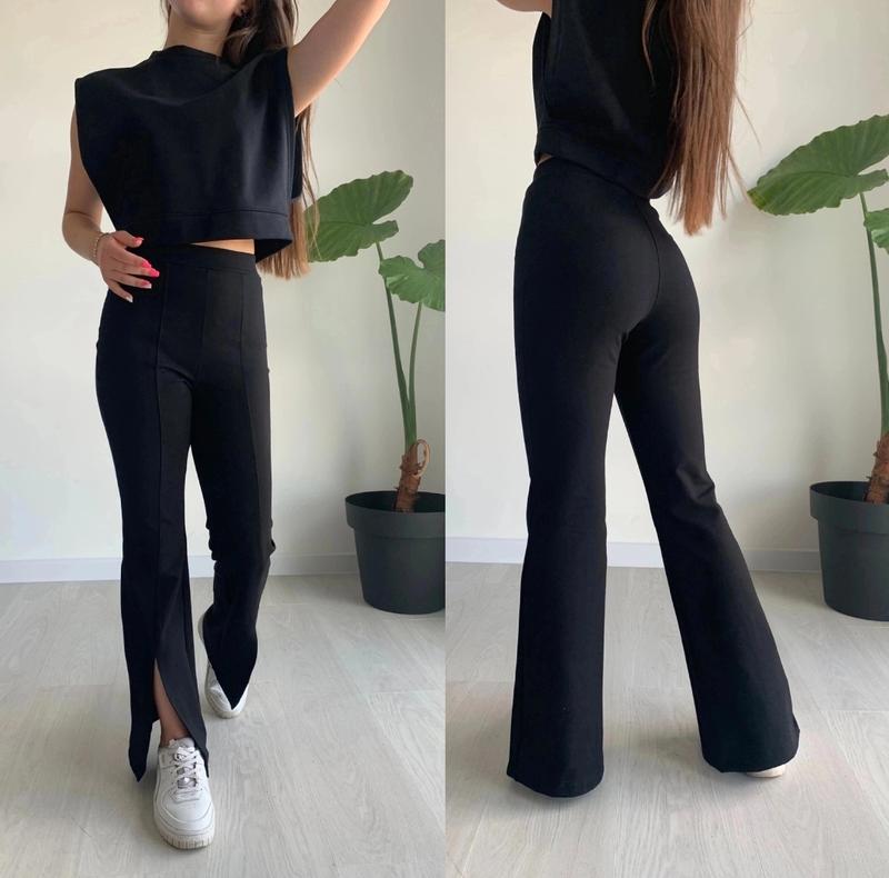 УТЕПЛЕНА МОДЕЛЬ❄️ Кльошні ,стильні , сучасні брюки для красунь 💗 Тканина турецький трикотаж «Алекс» на флісі, має стрейч ІЗ РОЗРІЗАМИ ‼️ Заміри: довжина/крок/пояс/бедра 134 - 86/64/26/33 - 1 140 - 90/68/27/35 - 1 146 - 94/70/29/36 - 1 Ян