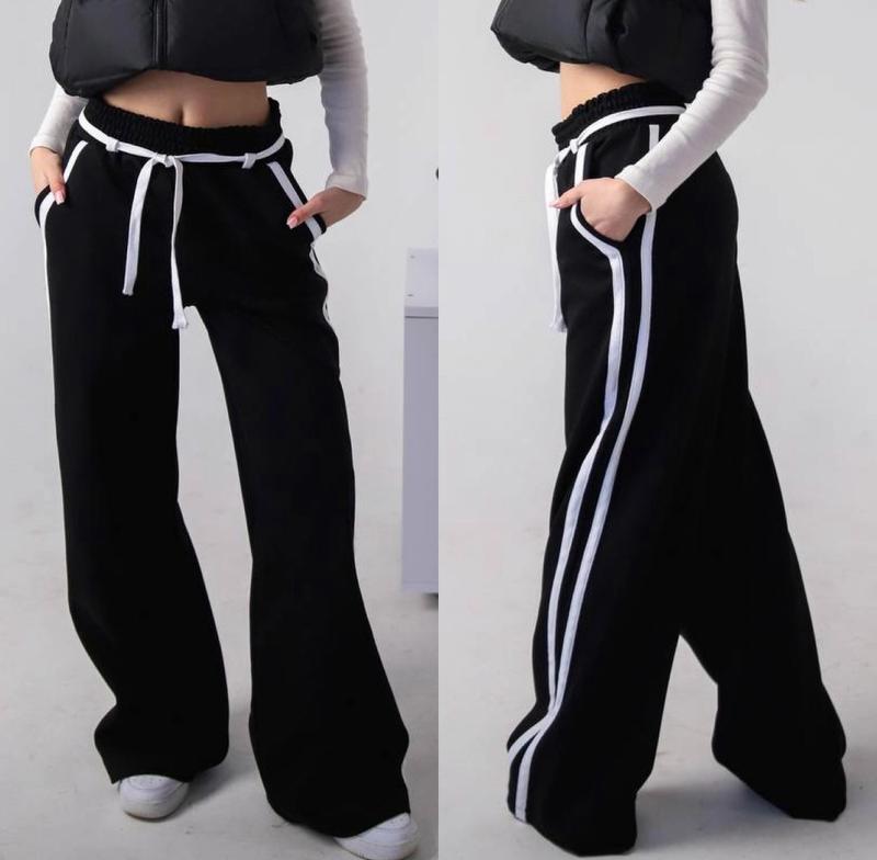 Арт 4491 Весняна новинка Штани палаццо з декоративними лампасами та білим шнурком є кишені Тканина турецька двонитка з ластиком зріст/довж.штанів/крок/пот/пос похибка +-2см 146-152/94/66/27/45-2ш Тан
