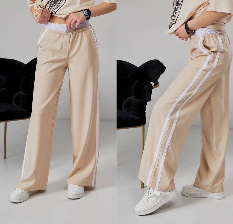 Арт 4854 Трендові брюки Весняно-літнього сезону із вставним поясом У поясі є утяжка та боковими полосками З кишенями Тканина-Бостон Якість супер Зріст/довжина/крок/пот/поб похибка+-2см 140-146/83/62/23/42-1шт 146-152/87/65/24/44-1шт 158-164/93/71/26/46-2шт 164-170/98/73/27/47-2шт