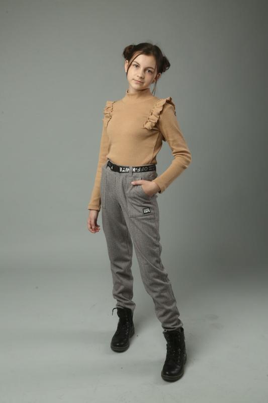 Тканина: кашемір ялинка, стрейч (каміла) ТЕПЛІ!!! Колір: шоколад Пояс йде у комплекті! ЗАМІРИ: р.128 довжина брюк/крок/стегно/пояс 82/60/37/25см р.134 довжина брюк/крок/стегно/пояс 84/62/38/26см р.140 довжина брюк/крок/стегно/пояс 86/63/40/27см р.152 довжина брюк/крок/стегно/пояс 96/72/43/29см ВЛАСНЕ ВИРОБНИЦТВО!