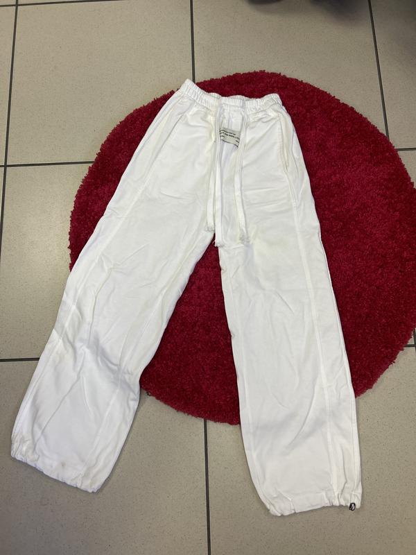 Полная длина штанов 91, по внут шву 65. Пояс резинка 26.
