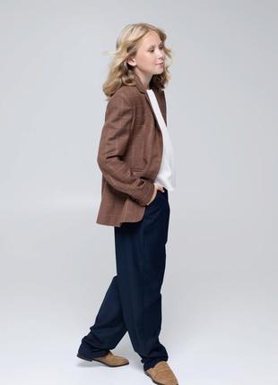 Брюки прямого крою, із злегка заниженою талією, насиченого темно-синього кольору. Застібається на блискавку, фіксується на поясі потаємними гудзиком та гачком, є бічні кишені. Склад: 32% поліестер, 65% віскоза, 3% еластан Розміри: 134, 140, 146, 152, 158, 164 На моделі розмір 152 на зріст 150 Український бренд одягу для дівчат підлітків KOSA, який тільки розпочинає свою історію.... Ми хочемо подарувати кожній дівчинці відчуття самоцінності, впевненості, свободи проявлення та витонченої дівочості, щоб вона "одягала" на себе ці відчуття., адже в такому віці це так необхідно. Іалійська тканина, увага до крою і деталей, якість у всьому.....Ми не йдемо на компроміси. Наше бачення, наші цінності і те, що ми хочемо передати нашим одягом, найголовніше!