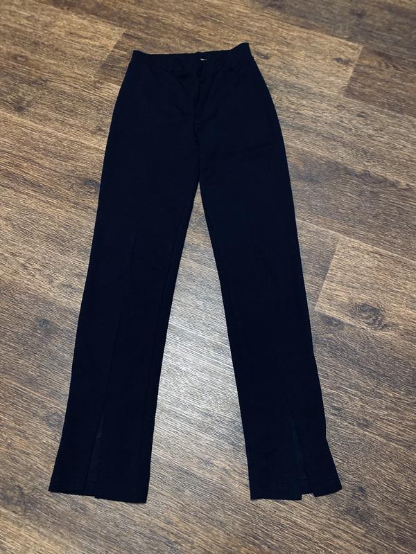 Дитячі штани, вузькі, знизу розрізи, на поясі гумка, чорного кольору, в ідеальному стані Заміри: Півобхват поясу - 30 см Півобхват стегон - 38 см Довжина виробу - 96 см Довжина внутрішнього шву - 70 см