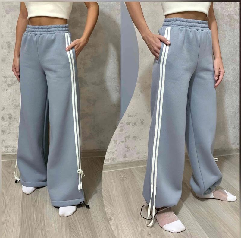 Теплі стильні палаццо Тканина турецька трьохнитка піньє на флісі, якість 🔥 пояс широка резинка, гарно тягнеться, внизу стягуються є кишені Заміри: довжина/крок/пояс 152 - 96/68/28 158 - 100/73/29 Ян