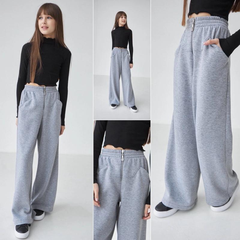 Брючки палаццо , тканина трикотаж на хутрі, пояс на резінці, блискавка по центру штанішок, кишені з кокетко заміри \довжина \крок \пояс 128-79\54\25 134-84\60\26 140-89\64\26 146-92\66\27 152-98\68\29 158-100\71\30 128-1шт 134-2шт 140-1шт 158-1шт