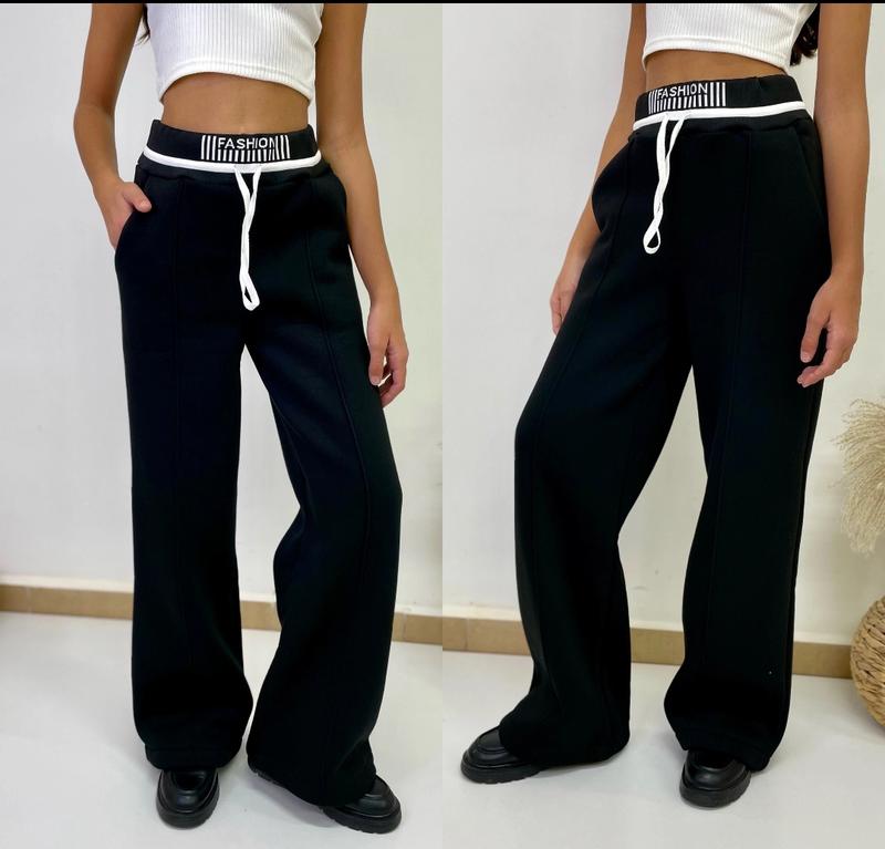 Арт 5923 Теплі штани палаццо З кишенями У поясі під широку резинку По переду йде висточка Тканина турецька тринитка пеньє на флісі не кашлатиться Зріст/довжина/крок/пот/поб похибка+-2см 140-146/93/62/29/45-1шт Тан