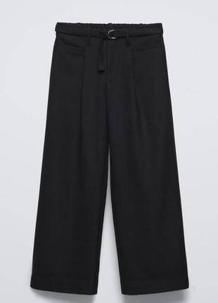 Брюки с эластичным поясом- резинкой, металлической застежкой и ремнем для регулировки. Карманы спереди, карманы с обшивкой сзади. в наличии размер 📌152 11-12 лет Длина 88/61 полуобхват бедер 49 пояс 33 тянется до 38 посадка сзади 33 состав ткани 63% полиэстер 34% вискоза 3% еластан Zara оригинал с бирками
