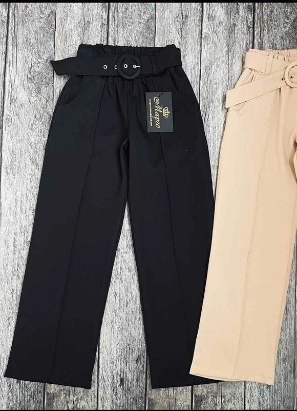 через кнопку купити тільки повна оплата!! Брюки Палаццо для дівчат. Пояс на широкій резинці. Поясок в комплекті. Колір - чорний. Тканина - костюмна. Заміри: 122 довжина - 77см, крок - 56см, пояс - 23см, напівобхват бедер - 40см. 128 довжина - 80см, крок - 59см, пояс - 24см, напівобхват бедер - 41см. 134 довжина - 81см, крок - 61см, пояс - 24см, напівобхват бедер - 43см. 140 довжина - 86см, крок - 66см, пояс - 26см, напівобхват бедер - 44см. 146 довжина - 88см, крок - 67см, пояс - 27см, напівобхват бедер - 45см. 152 довжина - 92см, крок - 70см, пояс - 28см, напівобхват бедер - 47см. 164 довжина - 96см, крок - 74см, пояс - 30см, напівобхват бедер - 52см. Мс