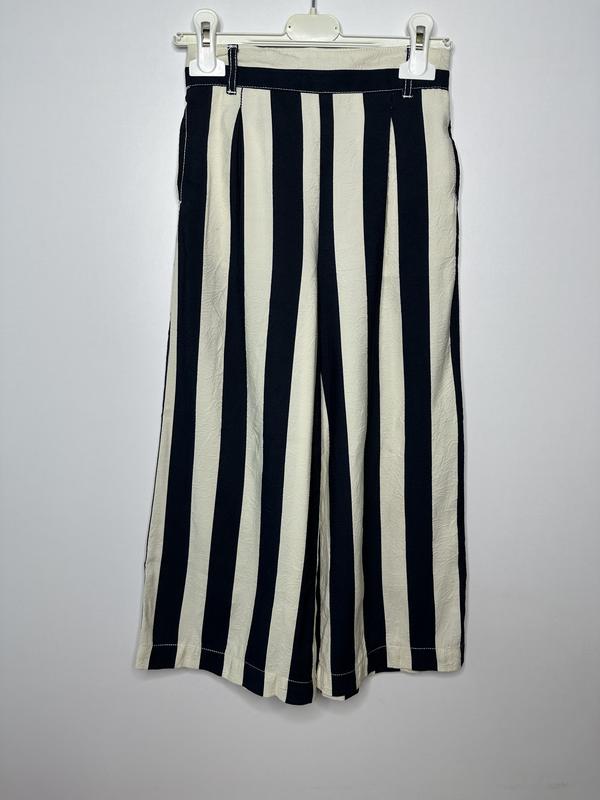 Шикарні, вишукані брюки, виконані з щільної віскозної тканини жатки Є кишені, пояс позаду на резинці. Довжина 73/49 Пояс 28 Стегна 42 Штанина внизу 27
