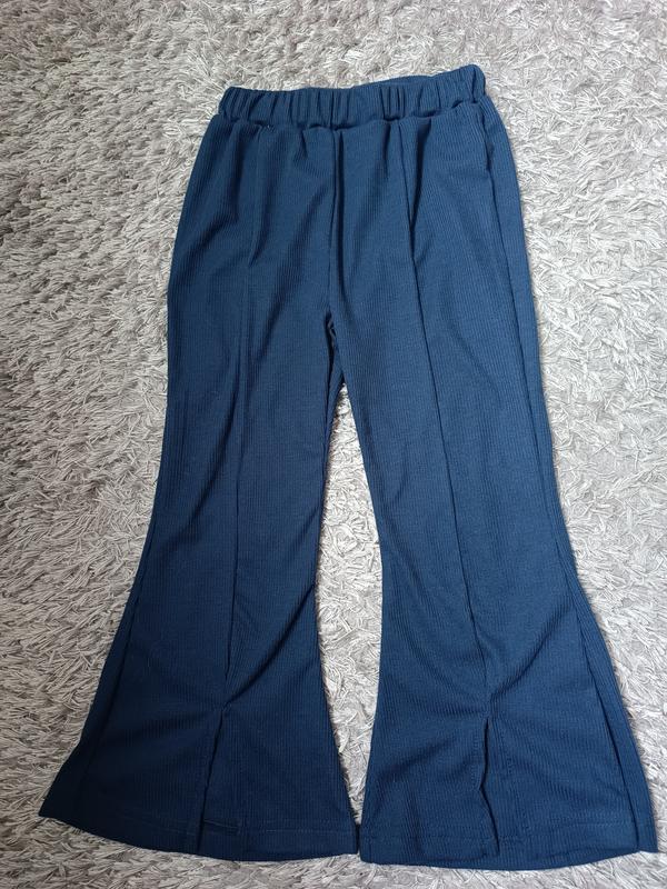 Тоненькі штанці кльош в рубчик з розрізом по середині.Темно синього кольорів.Стан ідеальний ❗ На 98-104 .3-4 роки