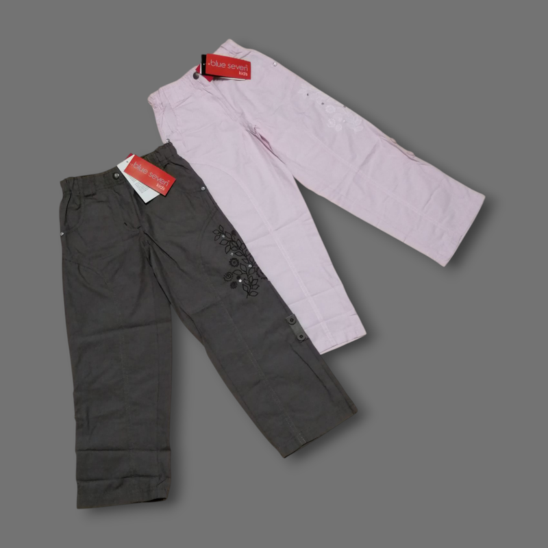 Літні штани на дівчинку р 116, можна підкочувати і носити як бріджі. Довжина 68 см, крок 51 см, пояс (резинка) 24+, напівобхват стегна 33 см.