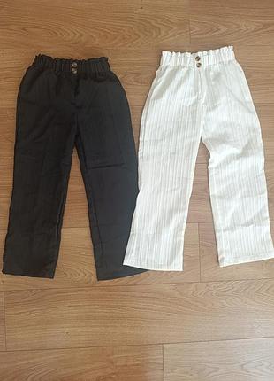 Літні штани для дівчинки На бірці розмір 130, Довжина внутрішнього шва 51 см Довжина зовнішнього шва 74 см Пояс 50 см( на резинці) В наявності чорні та білі штани Ціна 1 шт- 200 грн