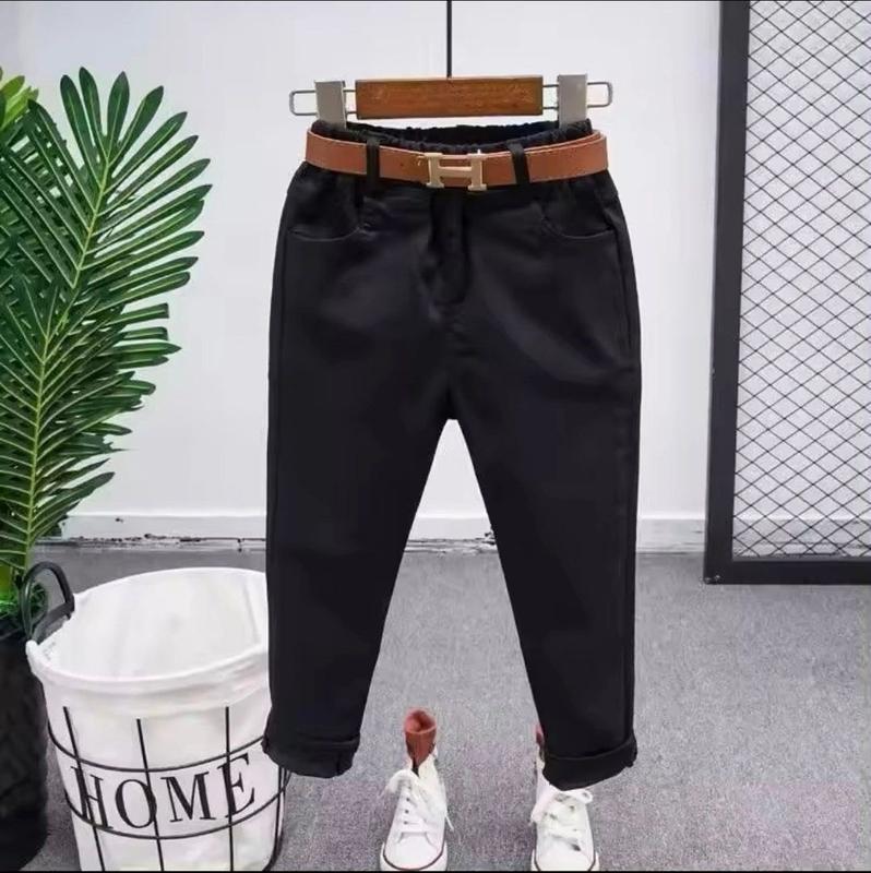 🎯В НАЯВНОСТІ Дроп \опт 705 грн ✍Стильні штани 🖤 Матеріал: котоновий джинс з додаванням еластану — чудово тягнуться та зберігають форму 🖤 Фасон: звужена штанина донизу 🖤 Посадка: в поясі зручна резинка — підійдуть на будь-яку повноту талії 🖤 Якість: відмінна, тканина приємна до тіла Мають кишені 🖤 Комплектація: йде в комплекті з стильним ременем Розмір 90(3 шт) 100(5 шт) 110(5 шт) 120(5 шт) 130(5 шт) 140(4 шт) 90-Довжина 50 см крок 30 см пояс 20*2 см 100-Довжина 55 см крок 35 см пояс 20*2 см 110-Довжина 60 см крок 39 см пояс 20*2 см 120-Довжина 65 см крок 42 см пояс 21*2 см 130-Довжина 70 см крок 46 см пояс 22*2 см 140-Довжина 75 см крок 50 см пояс 22*2 см Виміри зроблені однієї ростовки Допустима похибка +-1-2 см