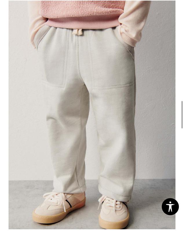 Брюки з еластичним поясом та регульованим шнурком, бокові декоративні смужки в стилі «ялинка», передні накладні кишені, задні кишені з клапанами. Колір: ніжний кремово-білий (такий, як на фото з сайту, чомусь камера його при світлі не захотіла передати на повну). Матеріал: 100% бавовна — зручно, не парить, ідеально для осені або весни (хоча дитина одягала і влітку, коли було прохолодно). Стан: як нові, мінімальні сліди використання (за бажанням – додати ваш реальний стан) Фасон зручний, стильний, підходить до кежуалів та легко комбінується зі світшотами, футболками або сорочками. Підійде і для хлопчика, але я купувала для дівчинки.