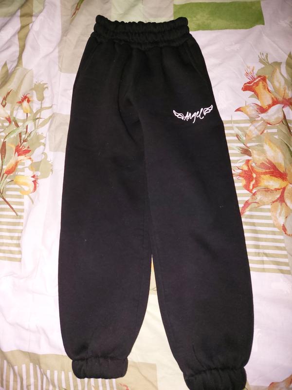 Теплі штани, тринитка на флісі, з написом Angel, дуже хорошої якості, без катишків. на бірці пише 110, але ми носили й на 116. Туга резинка, для худенької дівчинки