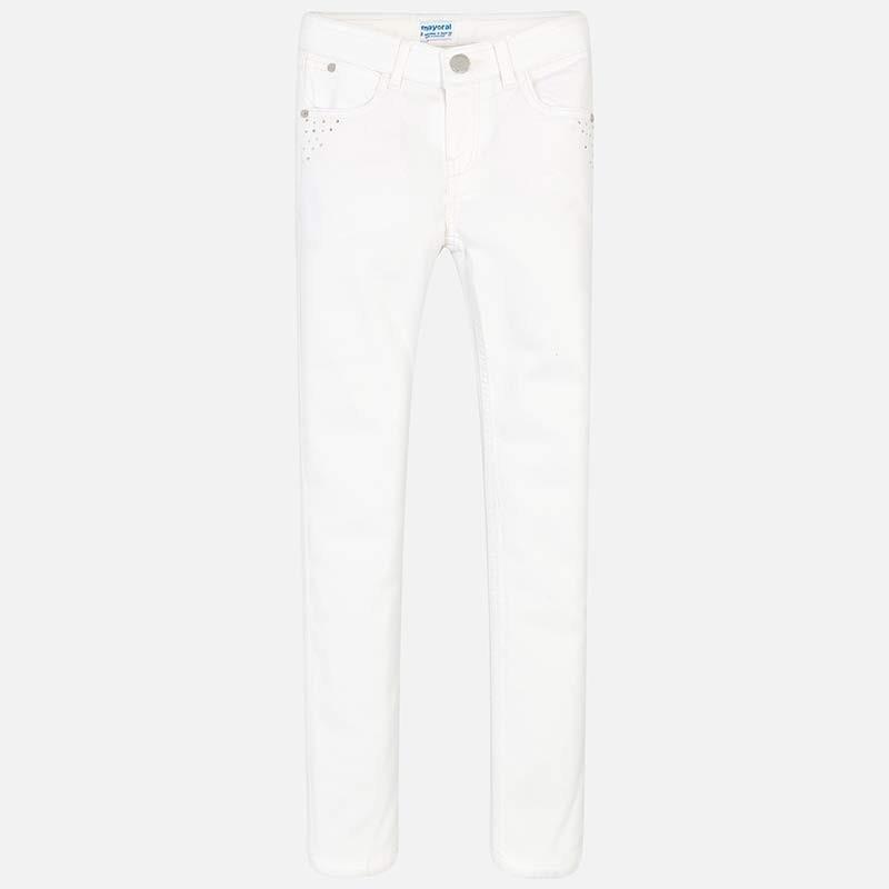 97% бавовна/3% еластан класичні штани Mayoral білого кольору, стрази біля кишень