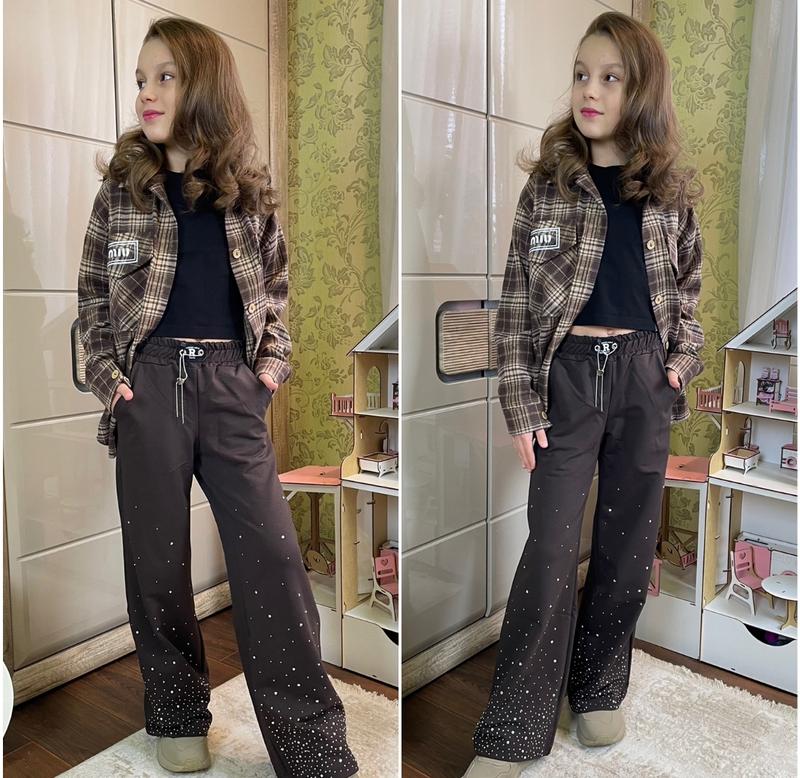 через кнопку купить только полная оплата!!! ВАУ НОВИНОЧКА 🥰😍💖 НАРЯДНЫЕ ПАЛАЦЦО ТКАНИНА ДВУХНИТКА 💜 В поясе на резинке Ткань турецкая двухнить пенье Украшенные стразами💗 качественные не отпадают!👌 Есть карманы Тканина не кошлатиться КАЧЕСТВО ЧУДОВА!! РЕКОМЕНДУЮ!!! ЦВЕТ ШОКОЛАД Замеры: длин / крок /пояс 116 - 69/50/22 122 - 71/52/23 140 - 84/63/26 146 - 88/66/27 152 - 93/71/28 158 - 98/76/30 164 - 102/81/31 -+2 см