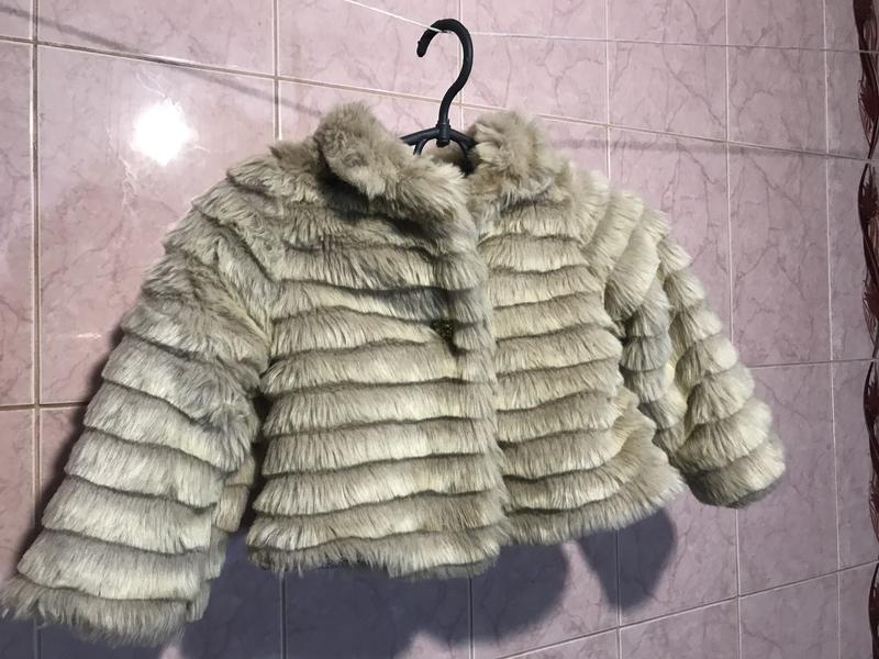 Дитяча шуба з штучного хутра, 12-18 місяців. Дуже гарно переливається при денному світлі , передній ґудзик з блискучими камінцями. Тепла , можна носити як в осінньо-весняний період, так і при перших морозах. Досить об’ємна , підійде навіть на 2-2,5 роки