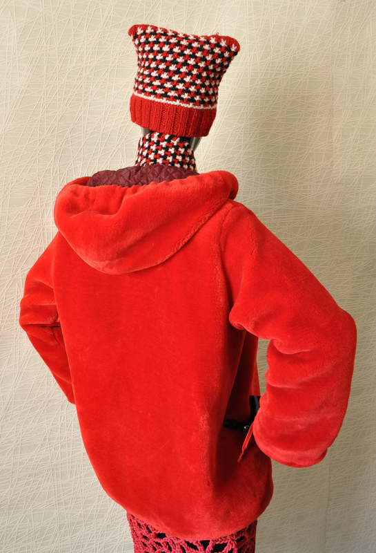 Искусственная короткая шубка с капюшоном для девочки. На стеганной подкладке. Длина по спинке 57 см. Длина рукава 60см