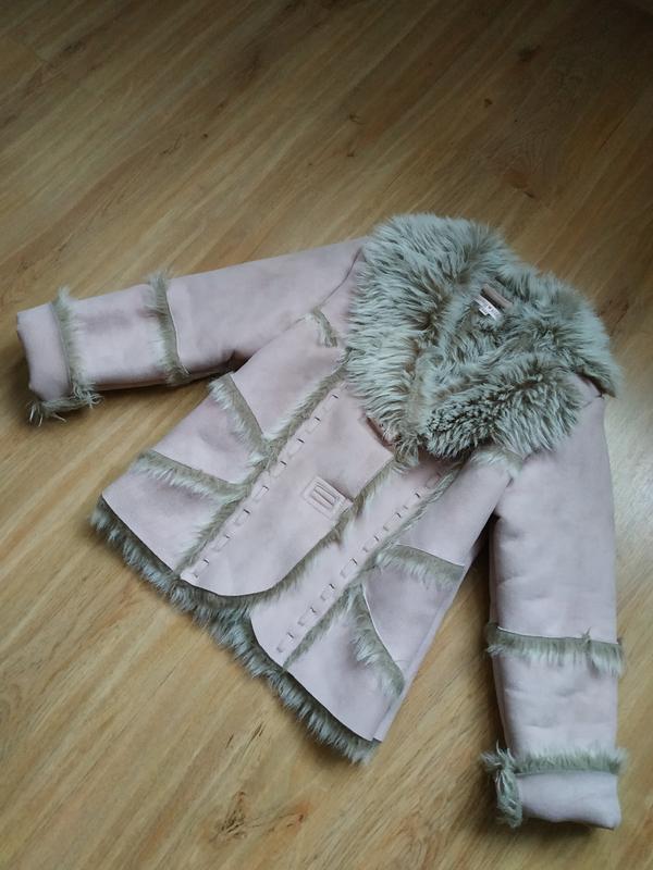 Дублянка для дівчинки, по бірці 8-10, 128-140. Красивий пудровий колір, тепла. Загубився гудзик. Дефектів немає, заміри по запиту.