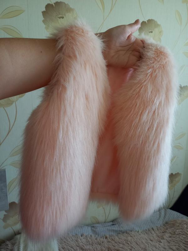 Жилетка хутряного кольору на 6 років Заміри: плечі 28 см мишки 41 см висота по спинці 43 см Спитуйте, на всі питання відповість) пересилою)