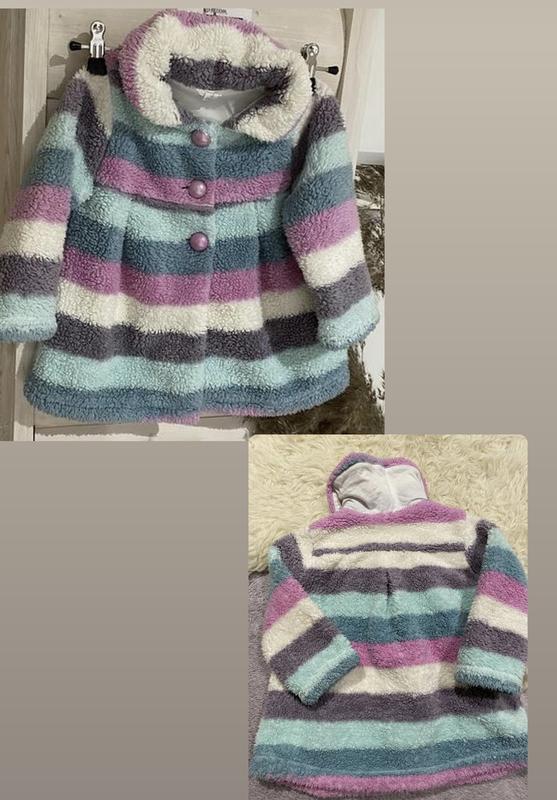 Стильна шубка тедді для дівчинки у смужку на 1-2 роки