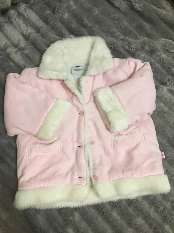 Дуже стильна дублянка для дівчинки віком 12-18 місяців, дуже яскравий має вигляд, із дефектів - на останньому фото видно, що не має одного гудзика..