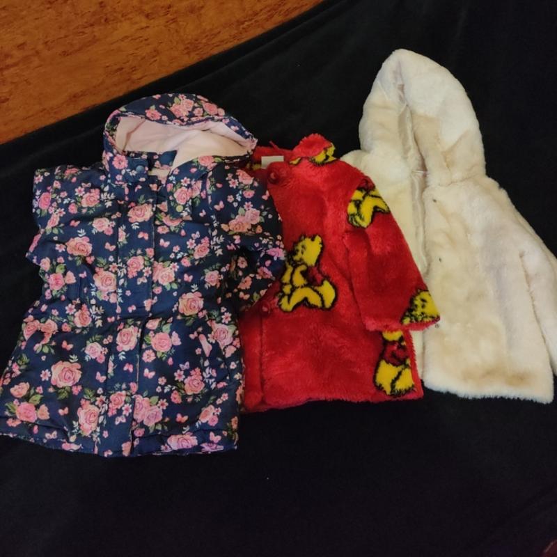 червона шубка розмір_12-18м. біла шубка розмір_18-24м. курточка розмір_24-36м стан ідеальний. Підходить на весну, осінь і теплу зиму.