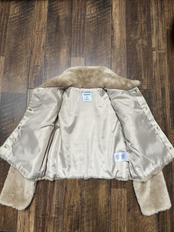 Продам еко шубку на дівчинку. Фірма Mayoral, розмір 12 р. ( 152 см.) Стан новий , одягали два рази . Дуже гарний колір та якість . Колір на фото не передається як в живу . Висота спинки 41 см., довжина рукава від плеча- 49 см .