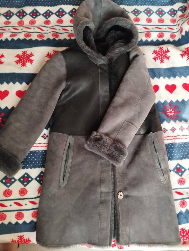 Дублянка з натуральної шкіри, з хутром на дівчинку (110-120 зріст) Двостороння. Одягалась 1 раз. Стан нової. Довжина по спинці 65 см, довжина.рукава 44 см, ширина - 37см. (куплялась за 200 доларів)