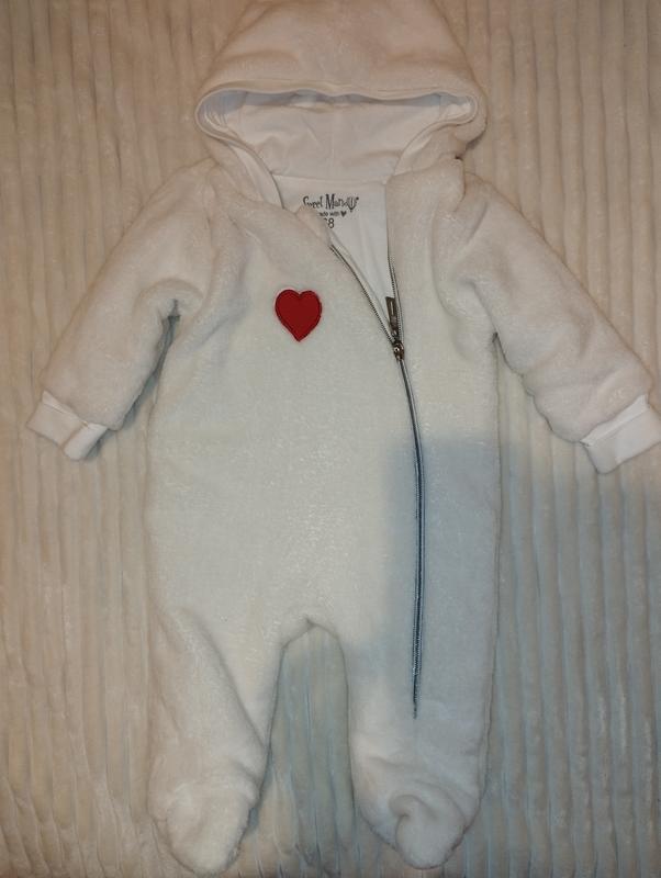 Теплий комбінезон для дівчинки в молочному кольорі. На розмір 62-68. Дуже мякенький і гарний. Стан нового)