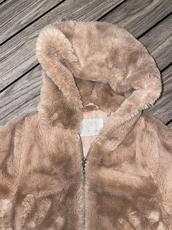 Шуба дитяча Zara 116, по бірці 6, краще брати на 5 або орієнтуватися на заміри. Заміри на фото, стан нової. Єдиний дефект порваний підклад з однієї сторони, фото є. На носіння не впливає. Шубка дуже мʼягенька.