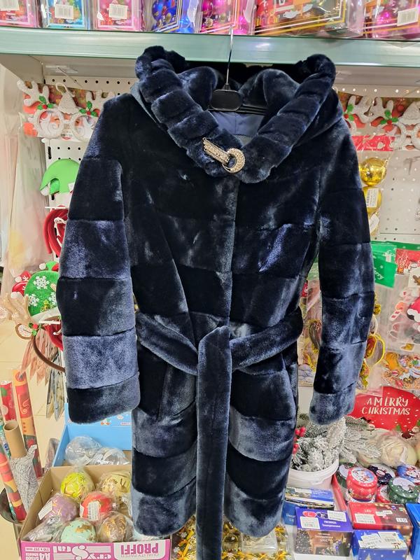 стан ідеальний, не заношена, красиво виглядає ,насичений синій темний колір .зріст вказаний 140см. нюанс немає кількох стразів на застібці і невелика кількість катишек на підкладці внутрі шубки