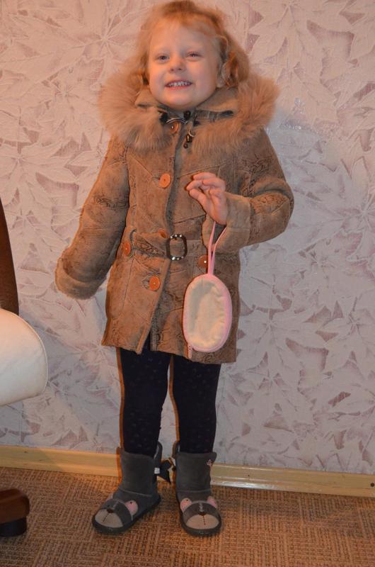 м'яка натуральна дублянка для дівчинки 2-4 роки повністю натуралка. в дуже хорошому стані рукав з запасом. підійде від 2 до 4 років Довжина від плеча 51 см рукав від горловини 51 см, носили ми з підворотом ширина від пахви до пахви 36 см в спокійному стані Дефектів і нюансів немає доп . фото за запитом